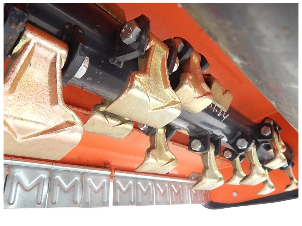 Tento mulčovač výrazně urychluje práci při péči v sadech a vinicích. Přídavný žací modul, který se automaticky sklopí, když narazí na překážku, a poté se vrátí do původní polohy. Pohon dvou horizontálních nožů vyklápěcího modulu je hydraulický a automatický spínač je mechanický. Mulčovač má vlastní hydraulické čerpadlo, které pohání motor výkyvné sekce. Navzdory tomu je od traktoru zapotřebí hydraulická sekce, která slouží k posuvu mulčovače. Kladiva a hydraulické čerpadlo jsou poháněny vývodovým hřídelem.