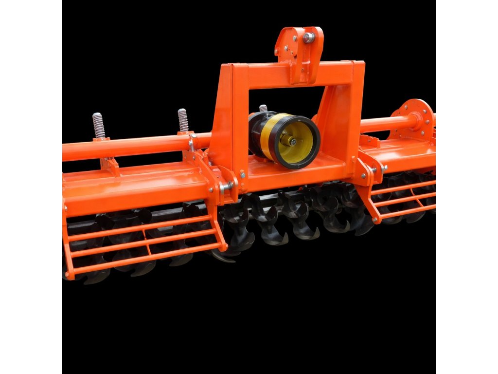Robustní rotační kultivátor pro traktory s výklonem od 90 HP, např. John Deere, Kubota, Iseki, Yanmar, Branson, Tym, Mitsubishi, Ferrari, Solis, Kioti, atd. Kultivátor je k traktoru připevněn pomocí univerzálního tříbodového závěsu.