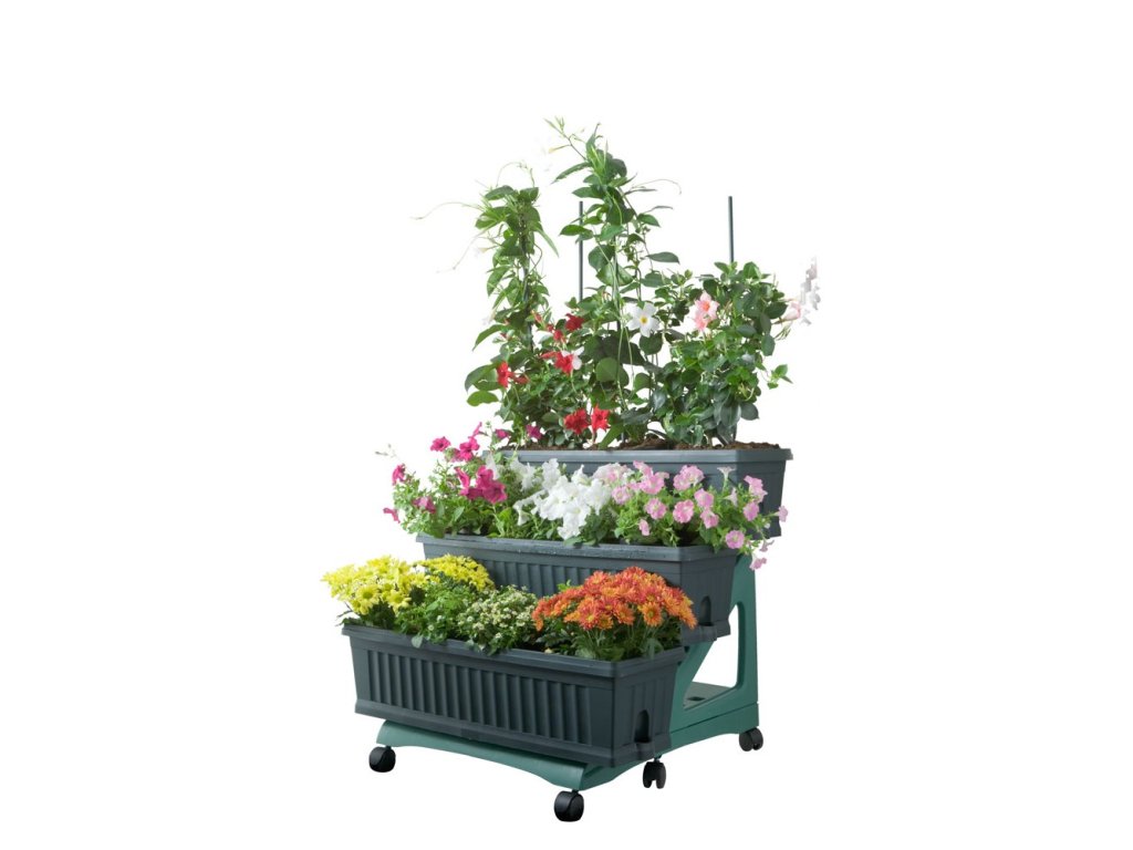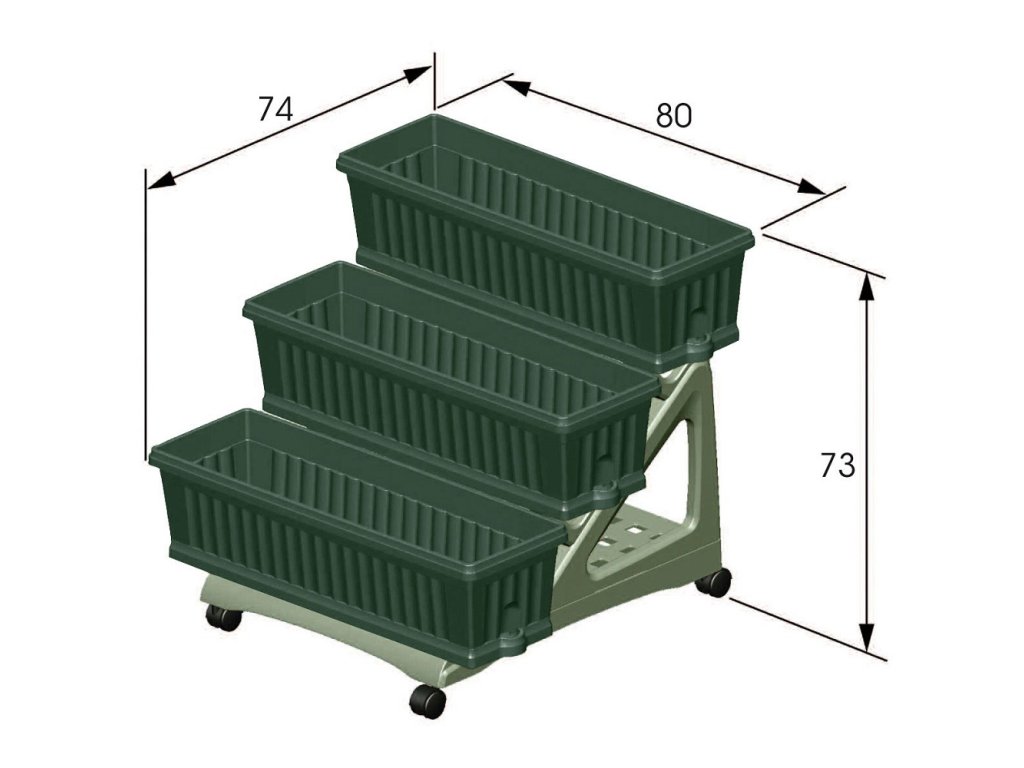 Celá konstrukce je snadno sestavitelná bez použití nářadí, což zajišťuje pevnost a lehkost. Díky kolečkům je manipulace s truhlíky jednoduchá, což umožňuje snadný přesun a optimální umístění rostlin vůči slunci.