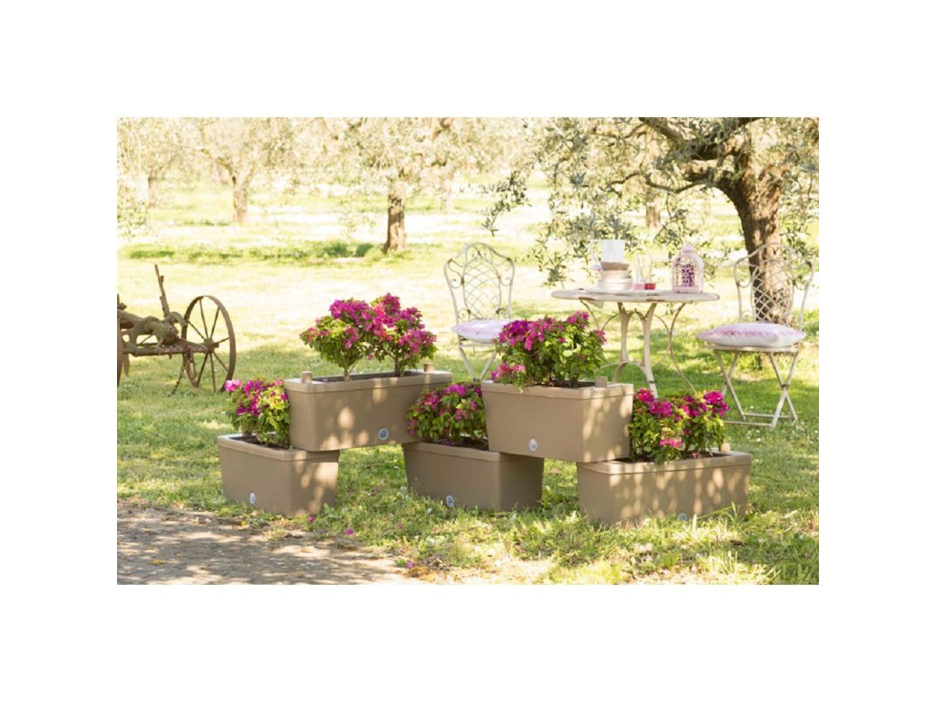 Truhlíky obsahují vnější a vnitřní nádoby, které se snadno zasouvají. Automatický zavlažovací systém zajišťuje optimální vlhkost pro rostliny. Množství vody lze jednoduše kontrolovat pomocí měrky hladiny vody.