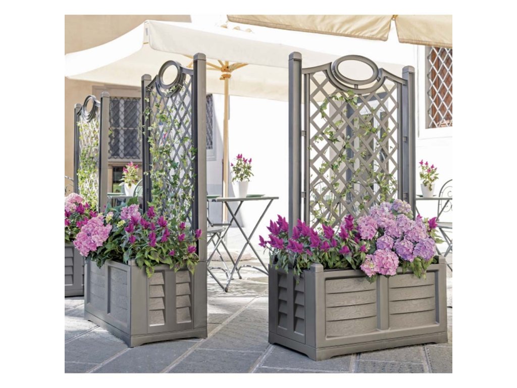 Velkoobjemový truhlík SEPARE AT s okrasnou mříží je ideální pro vytvoření přirozeného předělu mezi prostory. Ozdobí vaši terasu a přinese kousek italského stylu do vaší zahrady. Vyrobeno italským výrobcem BAMA.